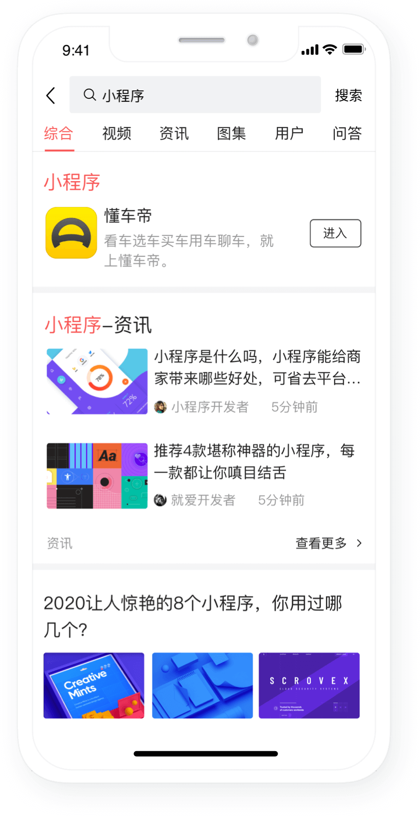 基于搜索场景实现精准拉新,搜索词推荐直达、字节如意等多种展现形式,强化小程序形态,直观展示小程序的服务,建立开发者多点触达用户能力,多种可供开发者运营的重访入口,使召回率最大化,进一步挖掘流量价值。